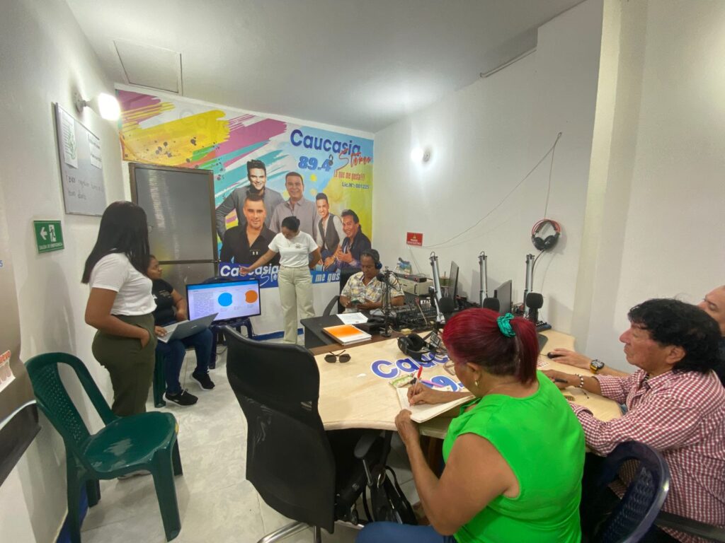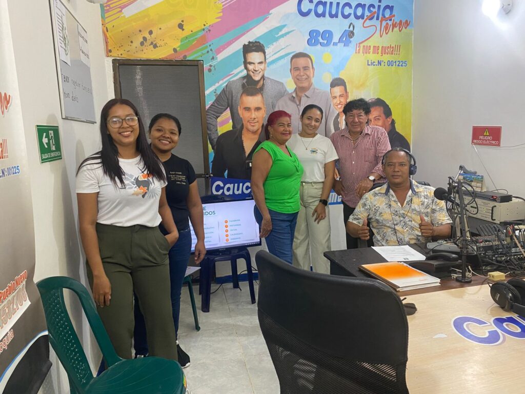 Estudiantes de la Universidad de Antioquia de la carrera de administración de empresa dictan capacitación con la guía de interacción en redes a miembros de la Junta Acción Comunal Barrio Pueblo Nuevo, Bertilda Jorge presidenta y la Emisora Caucasia Estéreo 89.4 F.m. Muy agradecidos.